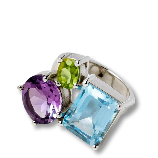 Tirinita ring: Peridot,Ametist,Mavi Topaz